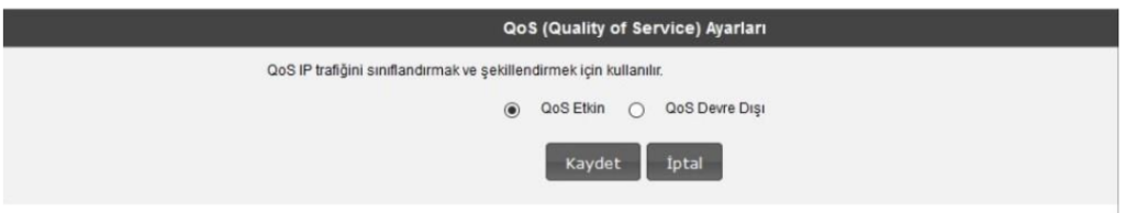 4. Cihazınızın web ara yüzünde, sol tarafta “Qos” menüsüne tıkladığınızda, orta ekranda “Qos Etkin” işaretlenip kaydedelim.