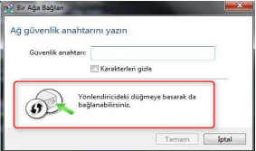 Ekrana gelen uyarı sayfasında “Güvenlik anahtarı” girmenizi isteyen ya da modeminiz üzerindeki AirTouch tuşuna basmanız gerektiğini bildiren bir uyarı mesajı gelecektir.