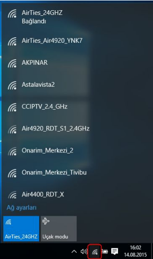 Cihaz yazılımı yüklendikten sonra bağlanmak için bilgisayar ekranınızın sağ alt köşesinde bulunan kablosuz bağlantı simgesine tıklayınız. Ekrana gelen kablosuz ağlardan, kendi kablosuz ağ adınızı seçtikten sonra uygun şifreyi girerek bağlantınızı gerçekleştirebilirsiniz.