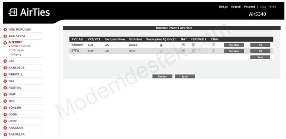Açılan ekranda PVC adı kısmında yer alan “İnternet” satırının sonundaki “Düzenle” butonuna