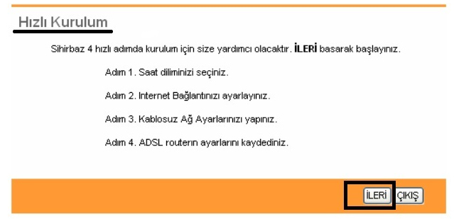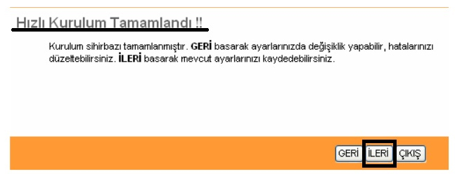 - Hızlı kurulum Tamamlandı !!’ bilgilendirme sayfasında ‘İLERİ’ butonuna tıklayalım.
