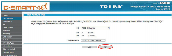 ADSL) İleri butonuna tıklayınız.