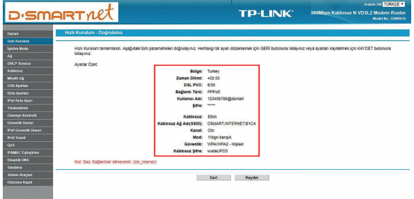 -Bu bölümde Hızlı Kurulum ayarlarınız tamamlanacaktır. Yapılan ayarların