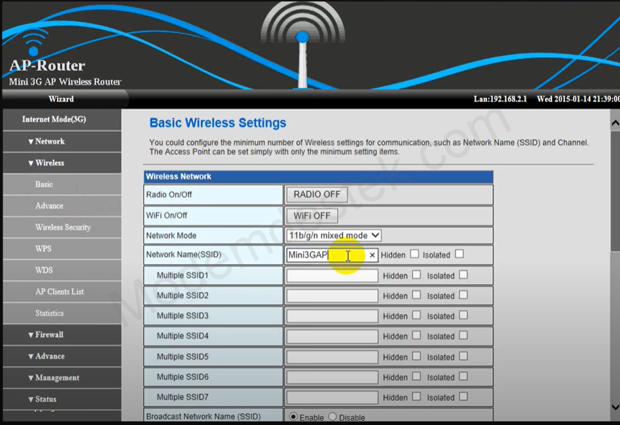 Sol menüde yer alan Wireless butonuna tıklayınız.