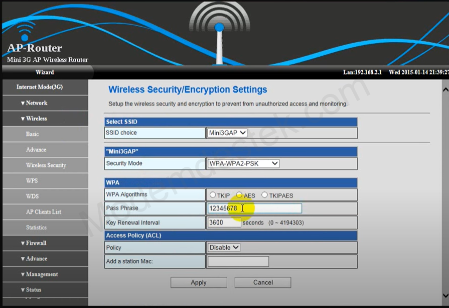 SSID belirledikten sonra alt menüde Apply butonuna tıklayınız.