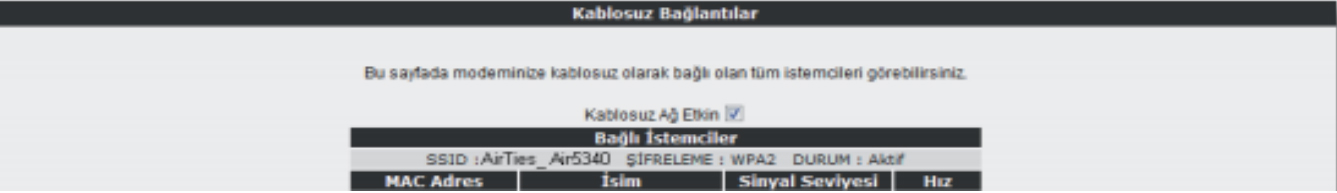 -Kablosuz ağınızın ayarlarını yapmak için “KABLOSUZ” ana menüsüne tıklayınız. Açılan sayfada “Kablosuz Ağı