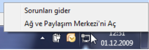 Masaüstünde sol alt bölümde Görev çubuğu üzerinde bulunan Ağ Kartı